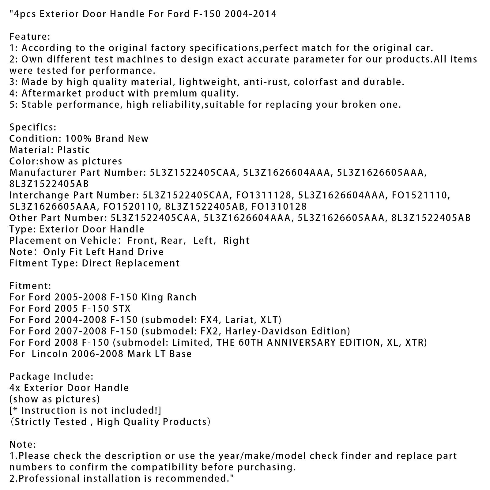 2004-2014 Ford F-150 4pcs Exterior Door Handle 5L3Z1522405CAA FO1310128