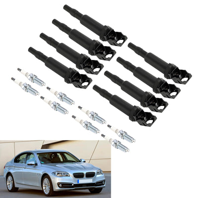 8X Ignition Coil +Spark Plugs UF592 Fit For BMW 550 650 750i X5 X6 4.4L