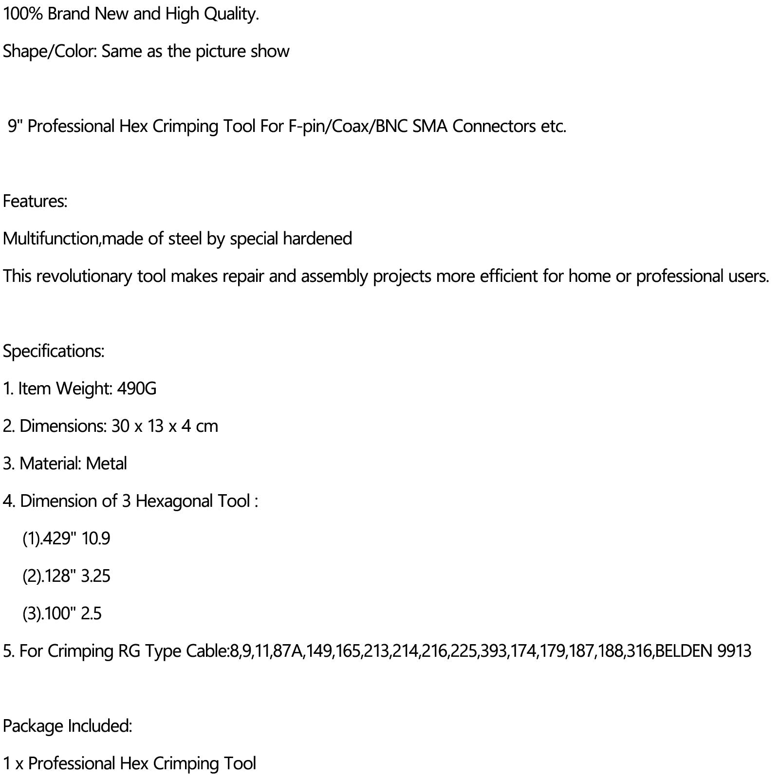9" Professional Hex Crimping Tool For F-pin/Coax/BNC SMA Connectors etc.