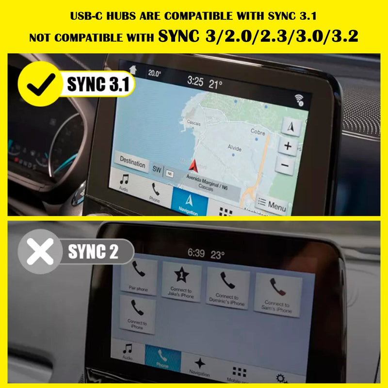 [Warm notice]: USB-C hub is not compatible with Sync 3/2.0/2.3/3.0/3.2.You need to visit Ford Car Play website, enter your VIN and upgrade to version 3.4 to access Car Play.