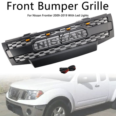 2009-2019 Nissan Frontier W/Led Lights Black Front Bumper Grill Grille
