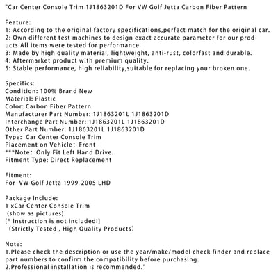 Car Center Console Trim 1J1863201D For VW Golf Jetta Carbon Fiber Pattern
