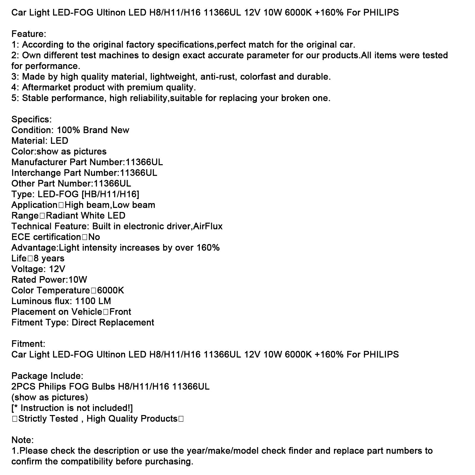 Car Light LED-FOG Ultinon LED H8/H11/H16 11366UL 12V 10W 6000K +160% For PHILIPS