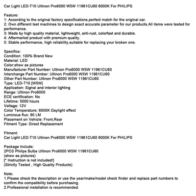 Car Light LED-T10 Ultinon Pro6000 W5W 11961CU60 6000K For PHILIPS