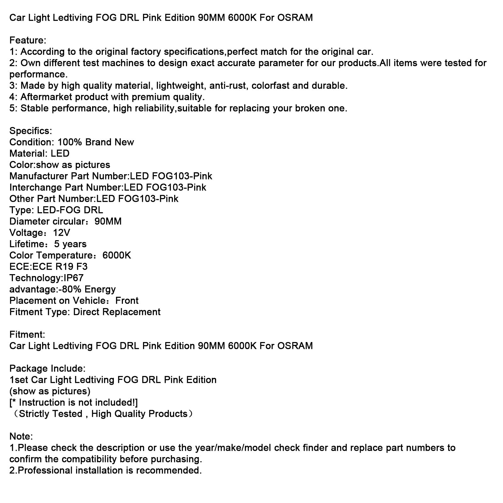 Car Light Ledtiving FOG DRL Pink Edition 90MM 6000K For OSRAM