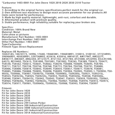 Carburetor 1403-0001 For John Deere 1020 2010 2020 2030 2510 Tractor