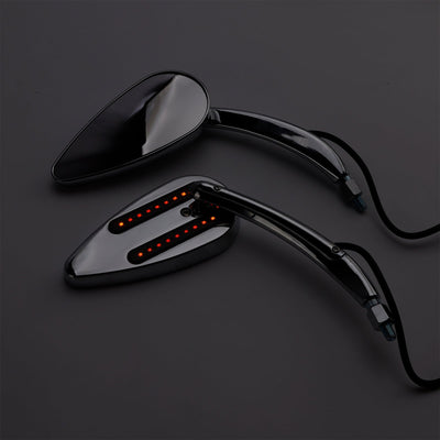 Incorporating forward-facing amber LEDs in a sleek teardrop-style mirror adds a modern touch to your ride while enhancing safety.