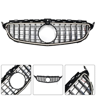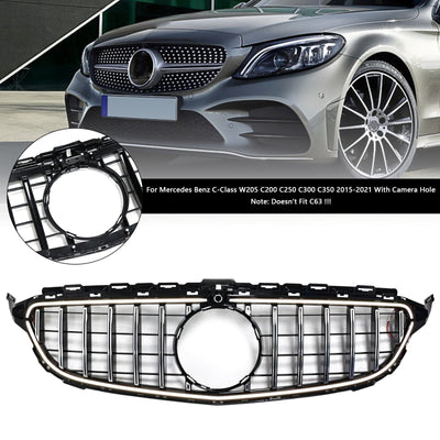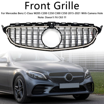 Chrome Front Bumper Grill Grille Fit Mercedes W205 C250 C300 2015-2021 W/LED