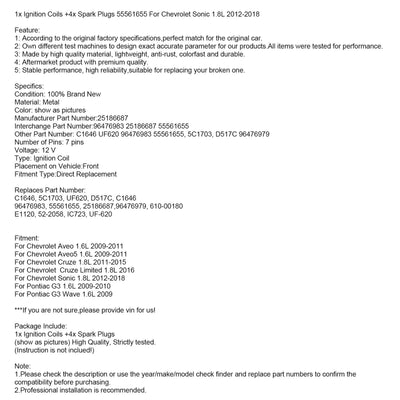 1x Ignition Coils +4x Spark Plugs 55561655 Fit For Chevrolet Sonic 1.8L 2012-2018
