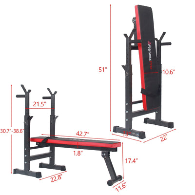 Adjustable Weight Bench Folding Bench Press w/Barbell Rack Pec workout