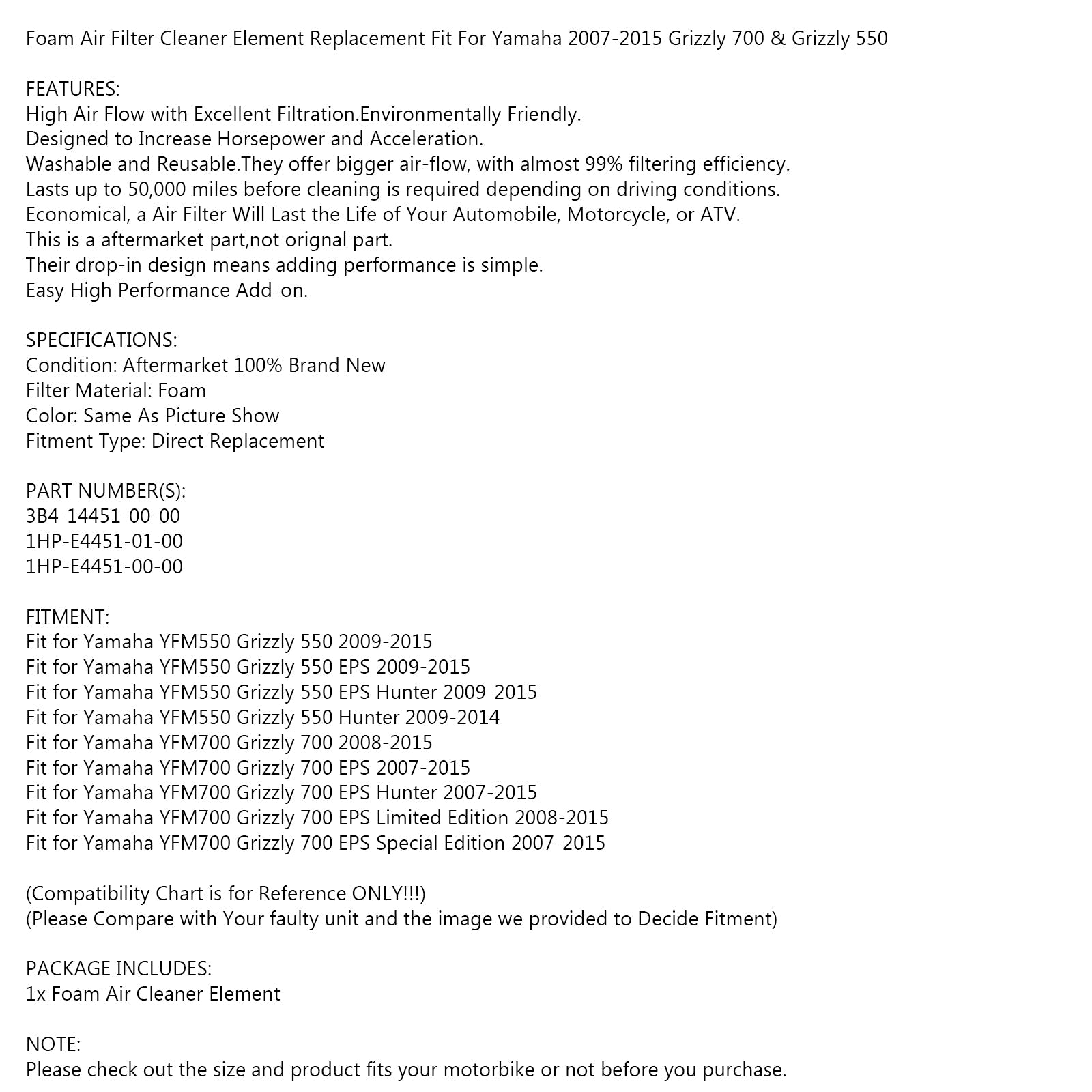 Foam Air Filter Cleaner Element Replacement Fit For Yamaha 2007-2015 Grizzly 700 & Grizzly 550