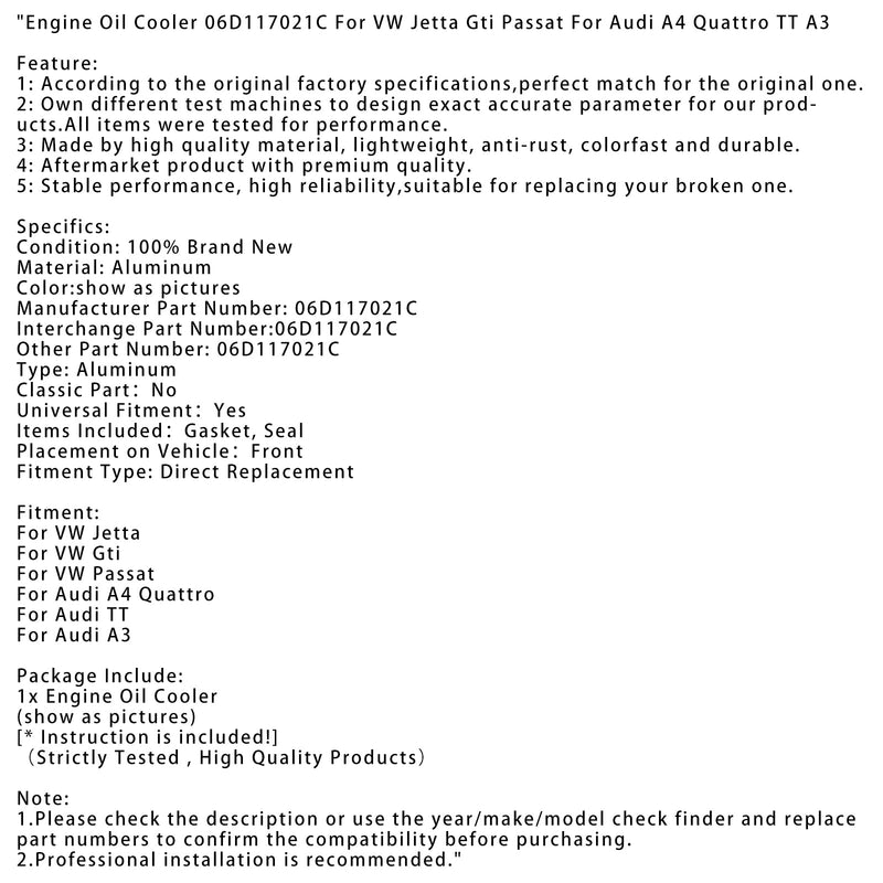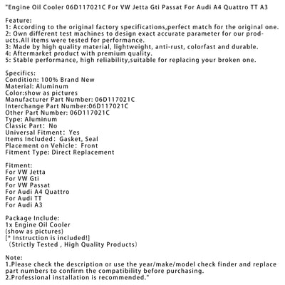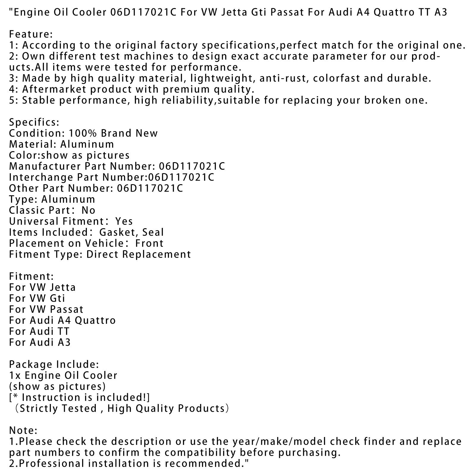 Engine Oil Cooler 06D117021C For VW Jetta Gti Passat For Audi A4 Quattro TT A3