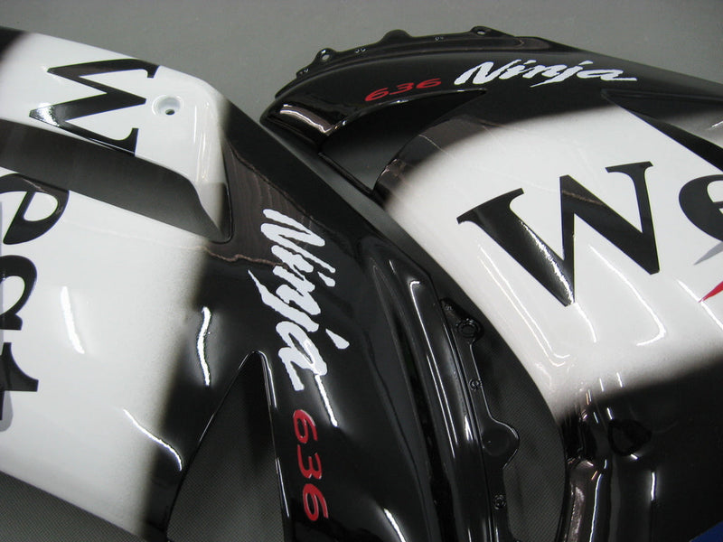 2007-2008 Fairings Kawasaki ZX6R ZX636 Black White West Ninja Racing Generic