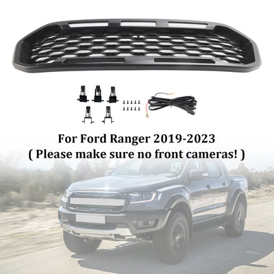 Front Bumper Grill Grille Fit Ford Ranger T8 2019-2023 Black W/LED Light