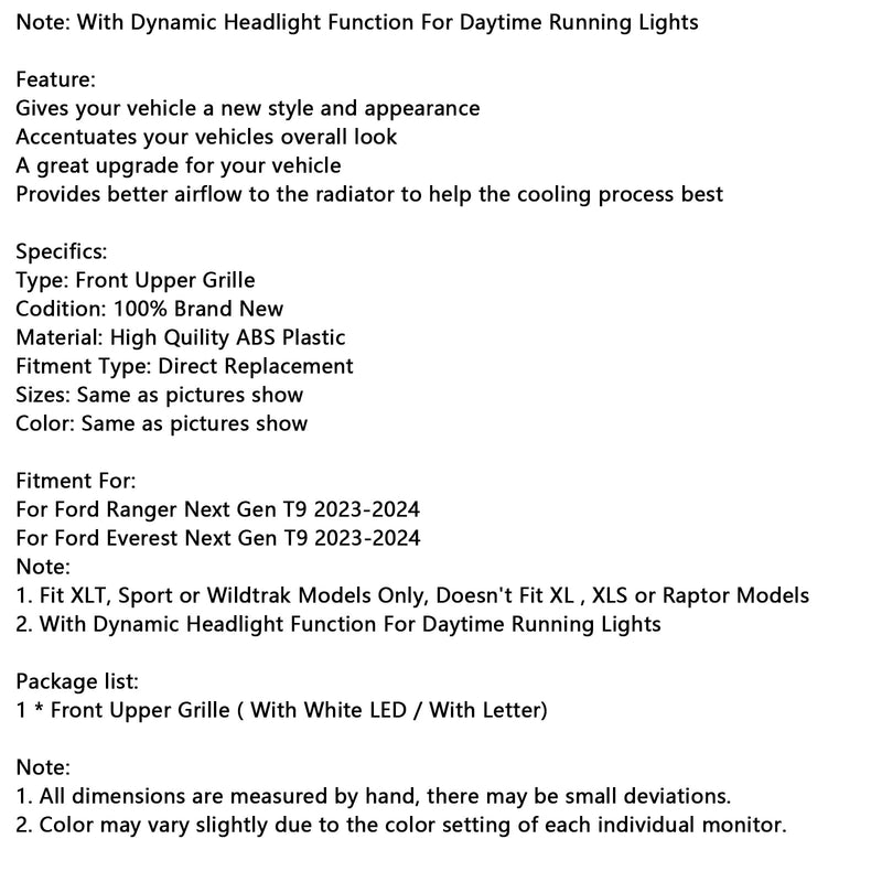 Front Bumper Grille Grill Fit Ford Ranger Everest Next Gen Wildtrak 2023-2024