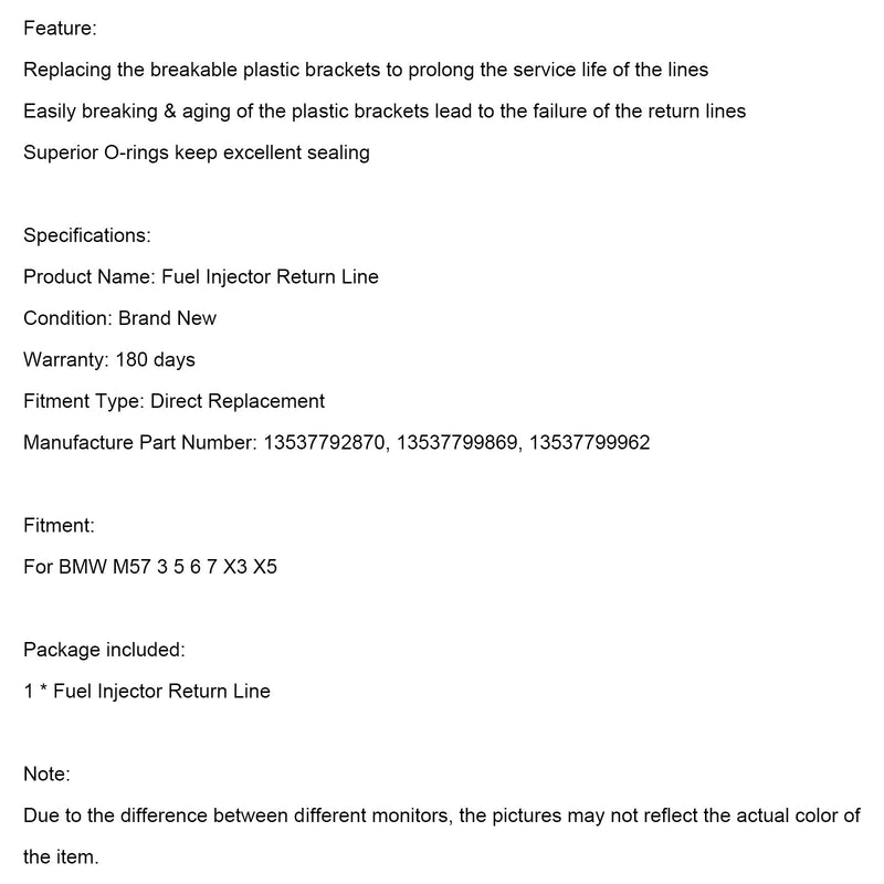 Fuel Return Line Hose Pipe Injector Hose Leak Line Fit for BMW 3 5 6 7 X3 X5 X6