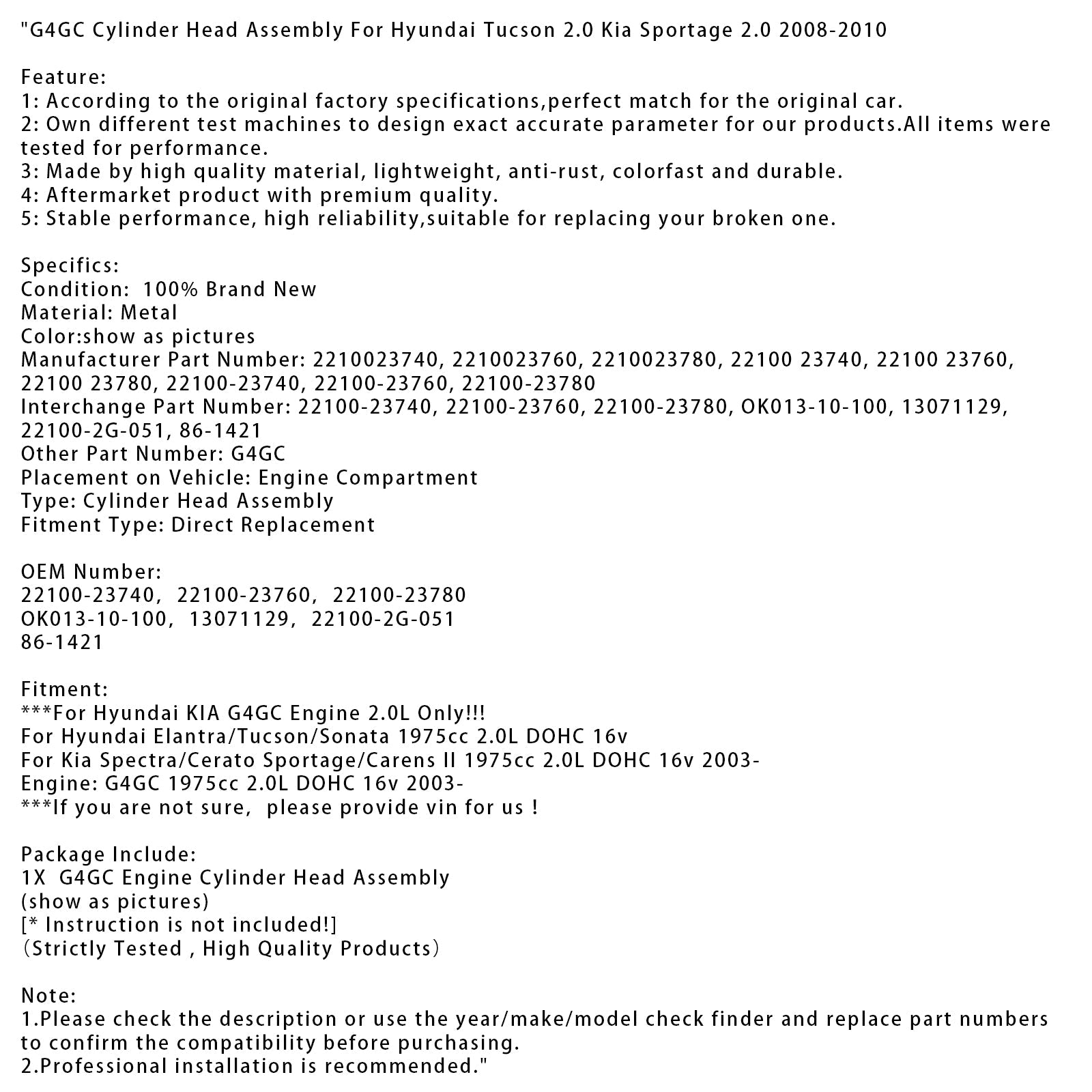 ***For Hyundai KIA G4GC Engine 2.0L Only!!!