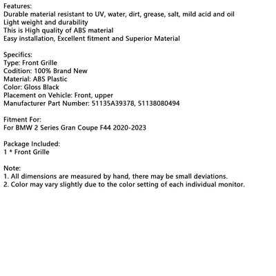 2020-2023 BMW 2 Series Gran Coupe F44 Gloss Black Front Bumper Grill Grille 51135A39378 51138080494