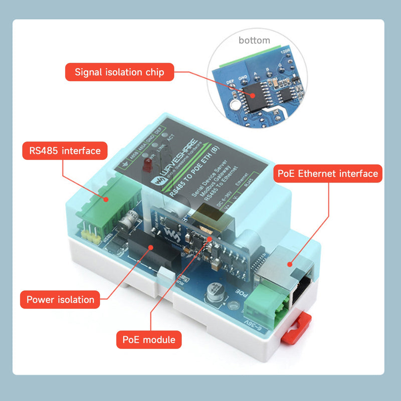 Industrial Grade RS485 to RJ45 Ethernet Module Multi-Host to Serial Port Server Supports Modbus Gateway