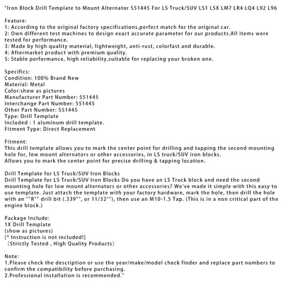 Iron Block Drill Template to Mount Alternator 551445 For LS Truck/SUV LS1 LSX LM7 LR4 LQ4 L92 L96