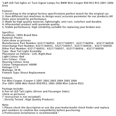 L&R LED Tail lights w/ Turn Signal Lamps For BMW Mini Cooper R50 R52 R53 2001-2006 Grey