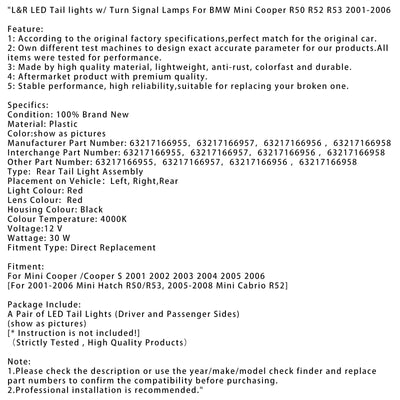 L&R LED Tail lights w/ Turn Signal Lamps For BMW Mini Cooper R50 R52 R53 2001-2006