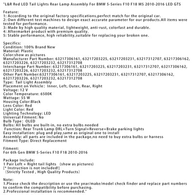 L&R Red LED Tail Lights Rear Lamp Assembly For BMW 5-Series F10 F18 M5 2010-2016 LED GTS