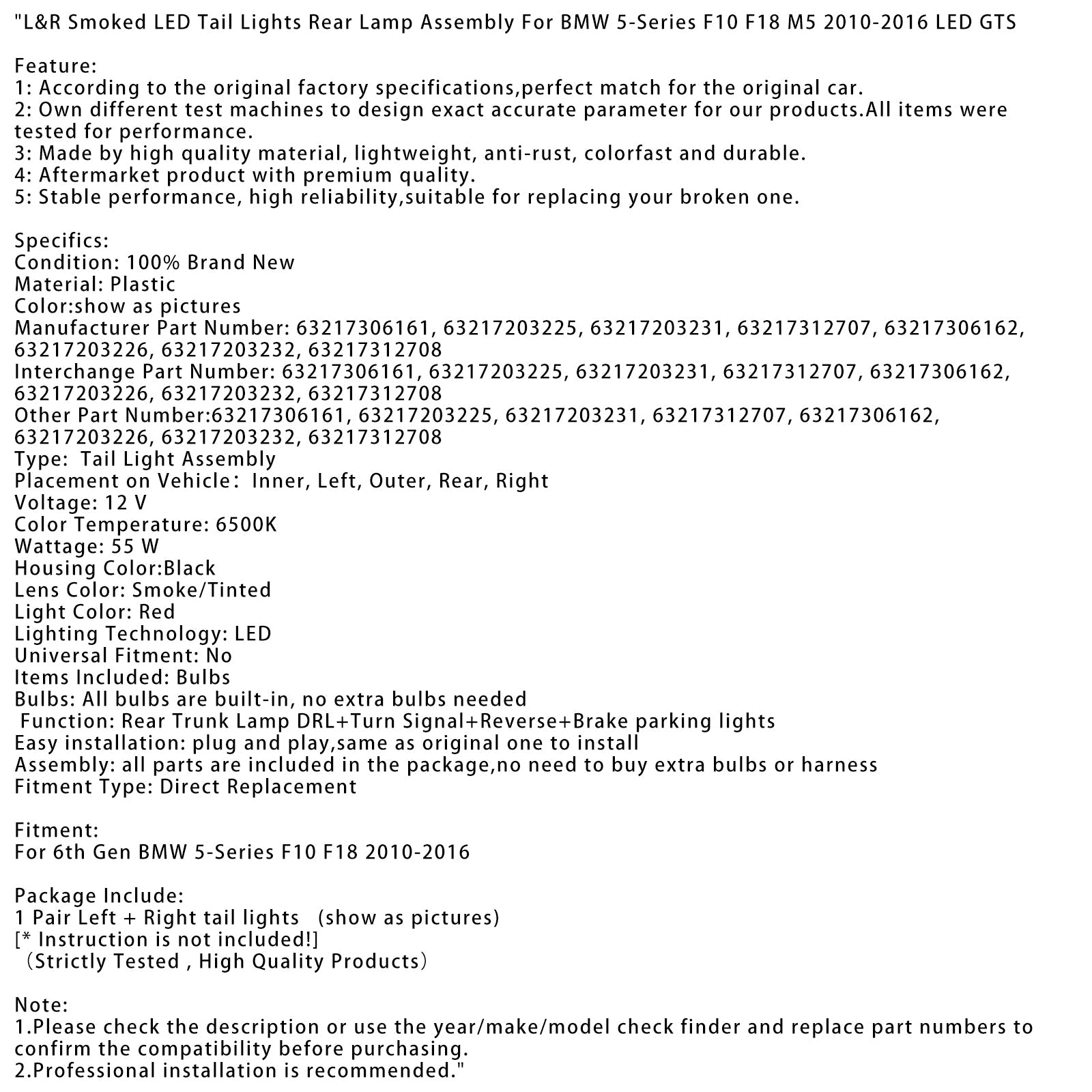 L&R Smoked LED Tail Lights Rear Lamp Assembly For BMW 5-Series F10 F18 M5 2010-2016 LED GTS