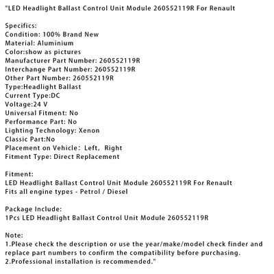 LED Headlight Ballast Control Unit Module 260552119R For Renault
