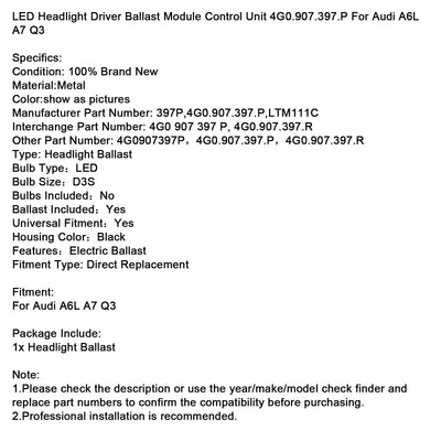 LED Headlight Driver Ballast Module Control Unit 4G0.907.397.P For Audi A6L A7 Q3