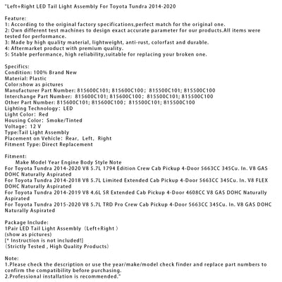 2014-2020 Toyota Tundra Left+Right LED Tail Light Assembly 815600C101 815600C100
