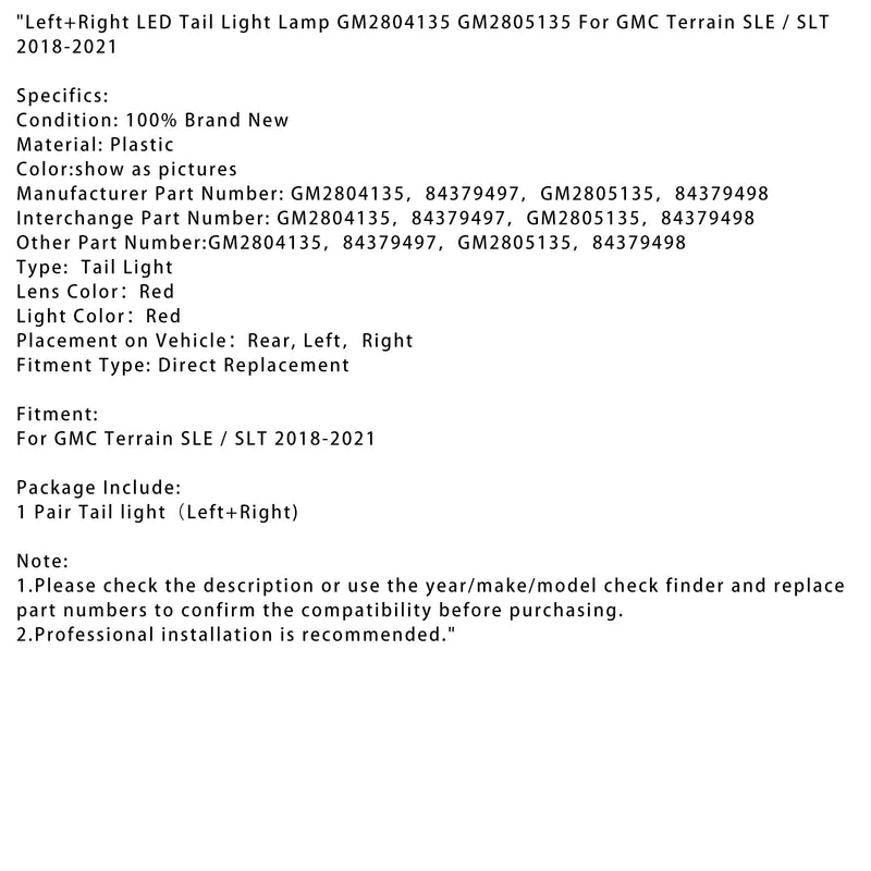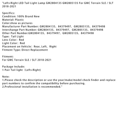 Left+Right LED Tail Light Lamp GM2804135 GM2805135 For GMC Terrain SLE / SLT 2018-2021