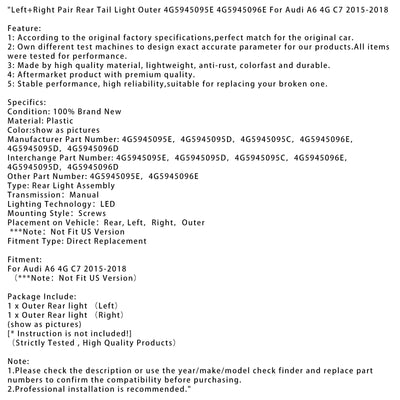Left+Right Pair Rear Tail Light Outer 4G5945095E 4G5945096E For Audi A6 4G C7 2015-2018