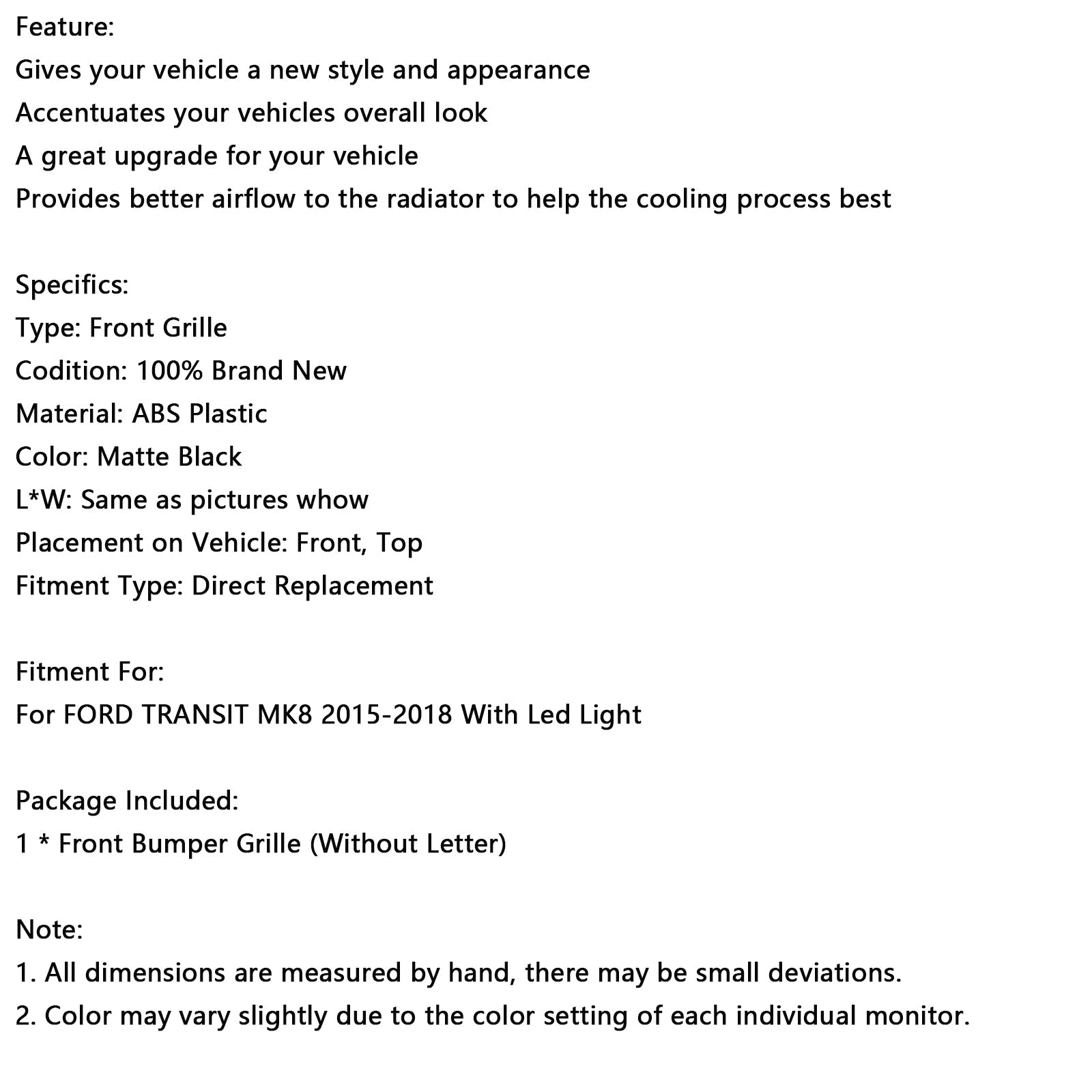 Matt Black Front Bumper Grill Grille Fit Ford Transit MK8 2015-2018 Raptor w/LED