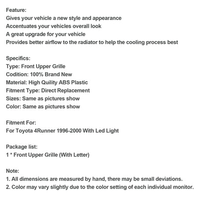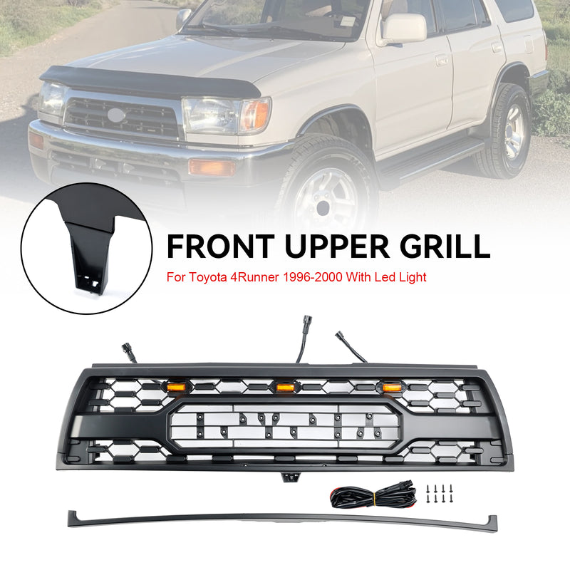 Matte Black Front Bumper Grill Grille Fit Toyota 4Runner 1996-2000 With Led