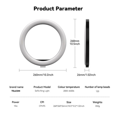 Ring soft light illuminates the beauty of details. The 26cm diameter ring soft light mask is all-round and soft and evenly filled with light. 120 optical lamp beads