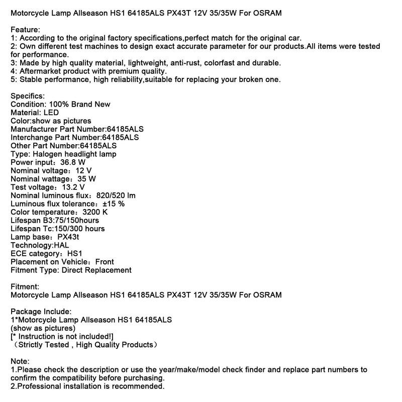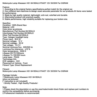 Motorcycle Lamp Allseason HS1 64185ALS PX43T 12V 35/35W For OSRAM