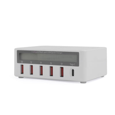 Intelligent Multiport Quick USB 6-Port QC3.0 Type C Charger Station With Wireless Charging Pad LCD Display for iPhone Samsung Huawei and Tablet
