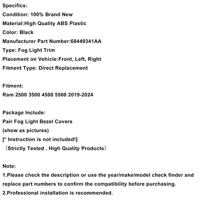 2019-2024 Ram 2500 3500 Pair Fog Light Bezel Trim 68449341AA