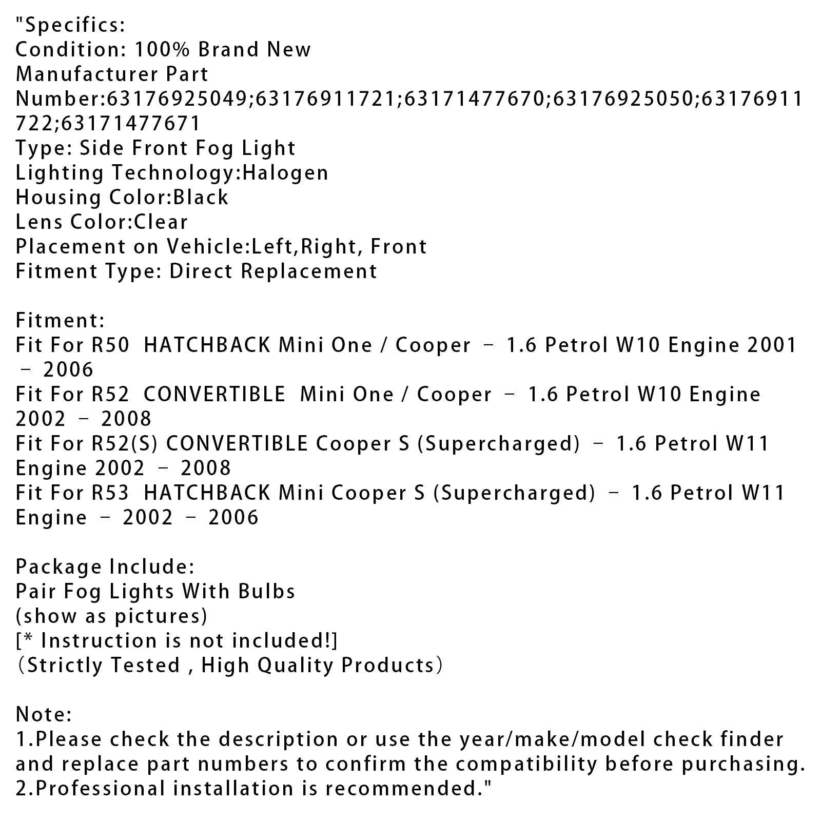 Pair Front Bumper Fog Lights For Mini Cooper One R50 R52 R53 63176925050