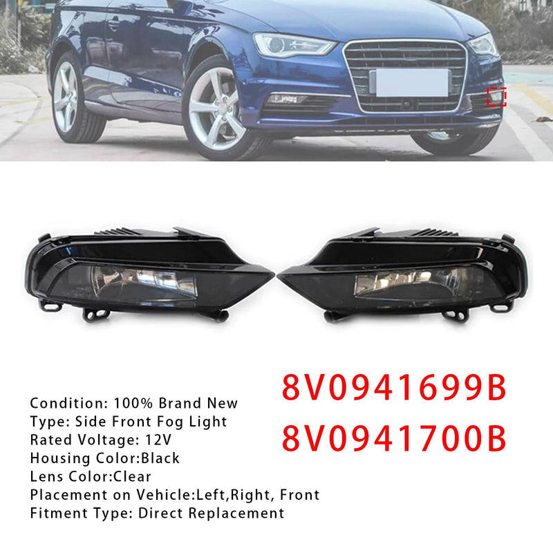 Pair Front Fog Light Lamps With Bulbs For Audi A3 Saloon 8V0941699B 2015-2016