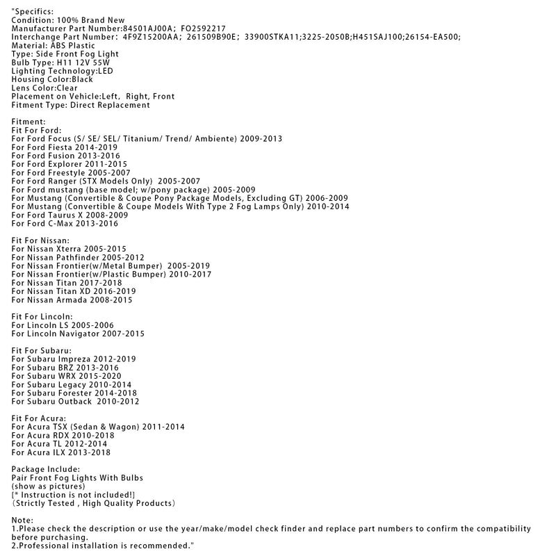 For Mustang (Convertible & Coupe Models With Type 2 Fog Lamps Only) 2010-2014
