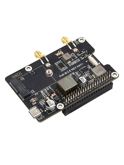 Raspberry Pi 5 PCIe to M.2 E Key with PoE Ethernet Power Supply Adapter Board
