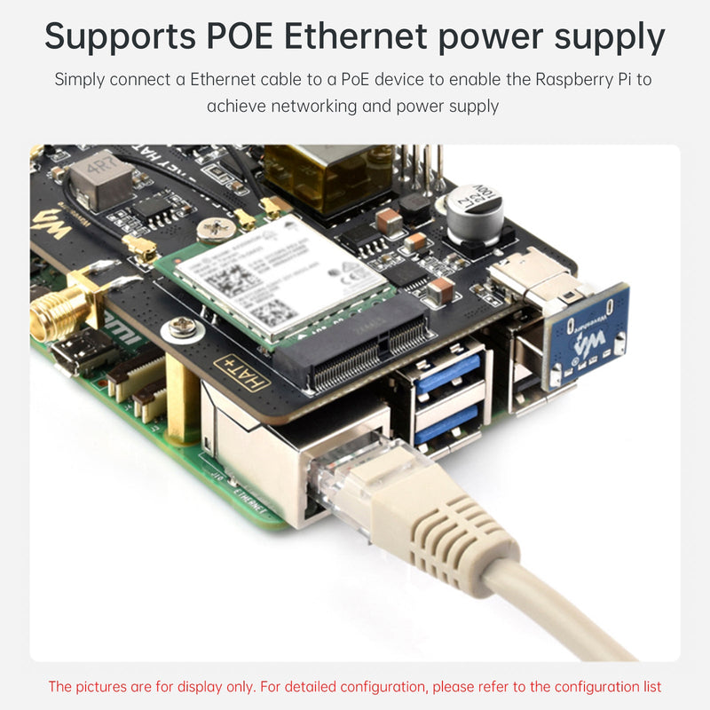 Support PoE Ethernet power supply, only need one network cable to connect to the PoE device to make the Raspberry Pi realize networking and power supply