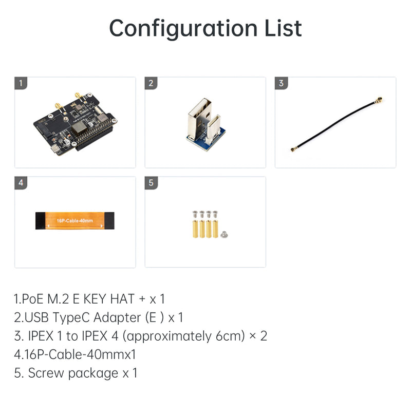 1x PoE M.2 E KEY HAT+
