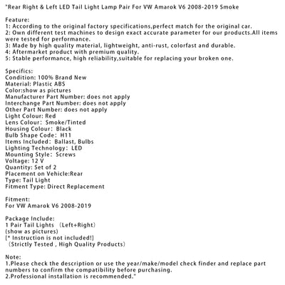 Rear Right & Left LED Tail Light Lamp Pair For VW Amarok V6 2008-2019 Smoke