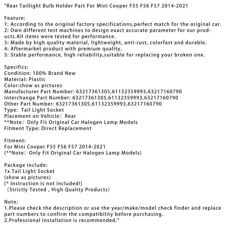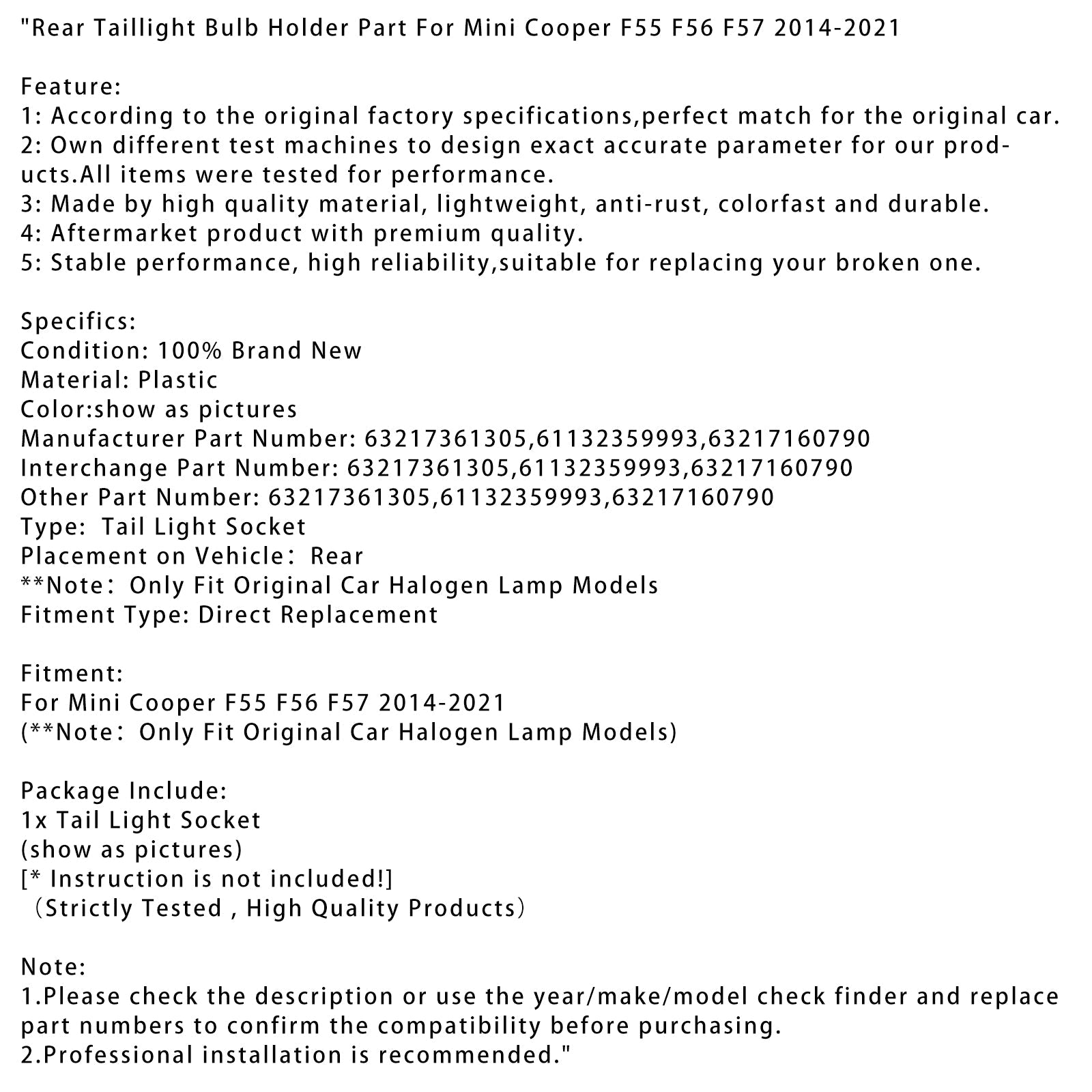 Rear Taillight Bulb Holder Part For Mini Cooper F55 F56 F57 2014-2021