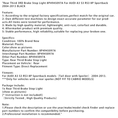 Rear Third 3RD Brake Stop Light 8P4945097A For AUDI A3 S3 RS3 8P Sportback 2004-2013 BLACK