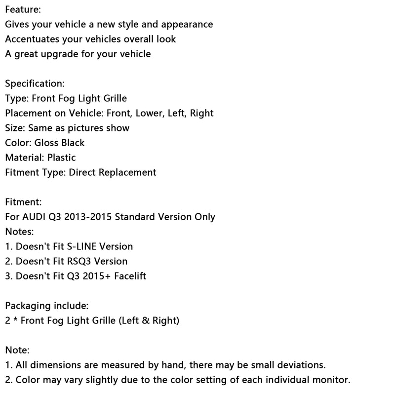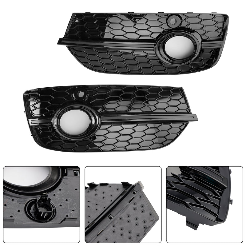 RSQ3 Style Honeycomb Front Fog Light Covers Fit Audi Q3 2013-2015 Gloss Black