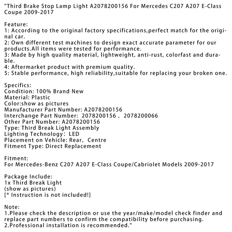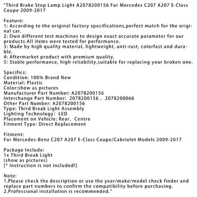 2009-2017 Mercedes-Benz C207 A207 E-Class Coupe/Cabriolet Models Third Brake Stop Lamp Light A2078200156 2078200156